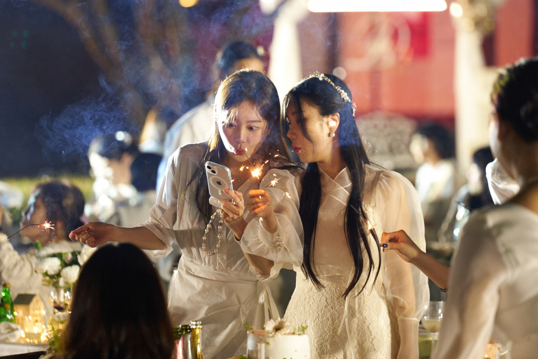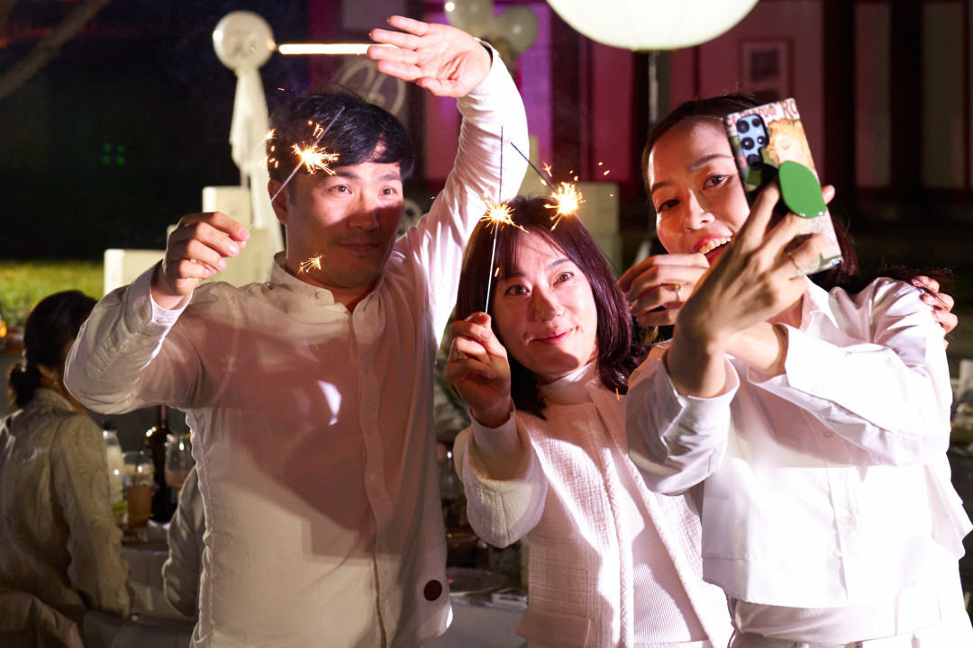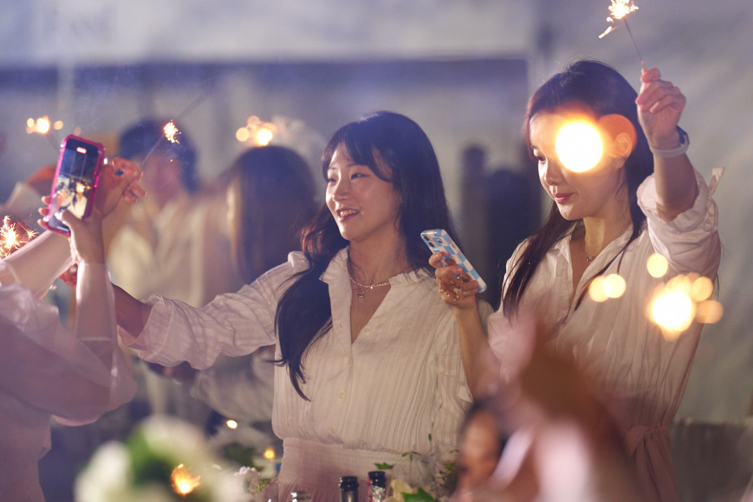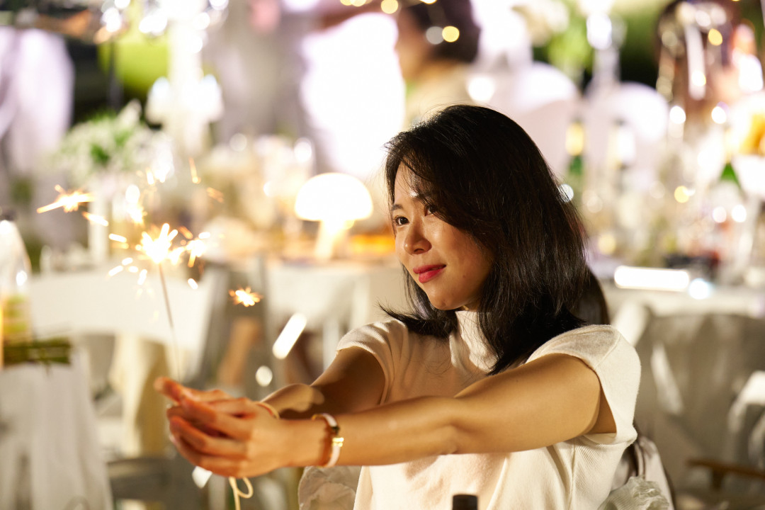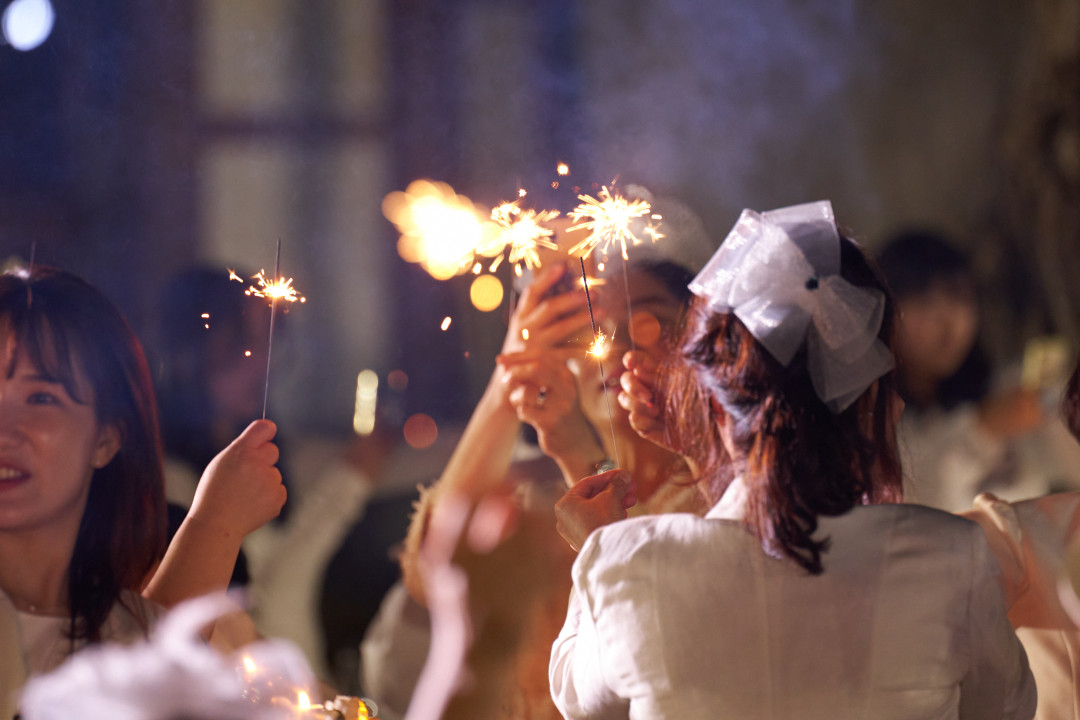 Guests light up the sky to signal the end of their elegant dinner and the rest of the night. It’s time to mix and mingle and enjoy the live entertainment!